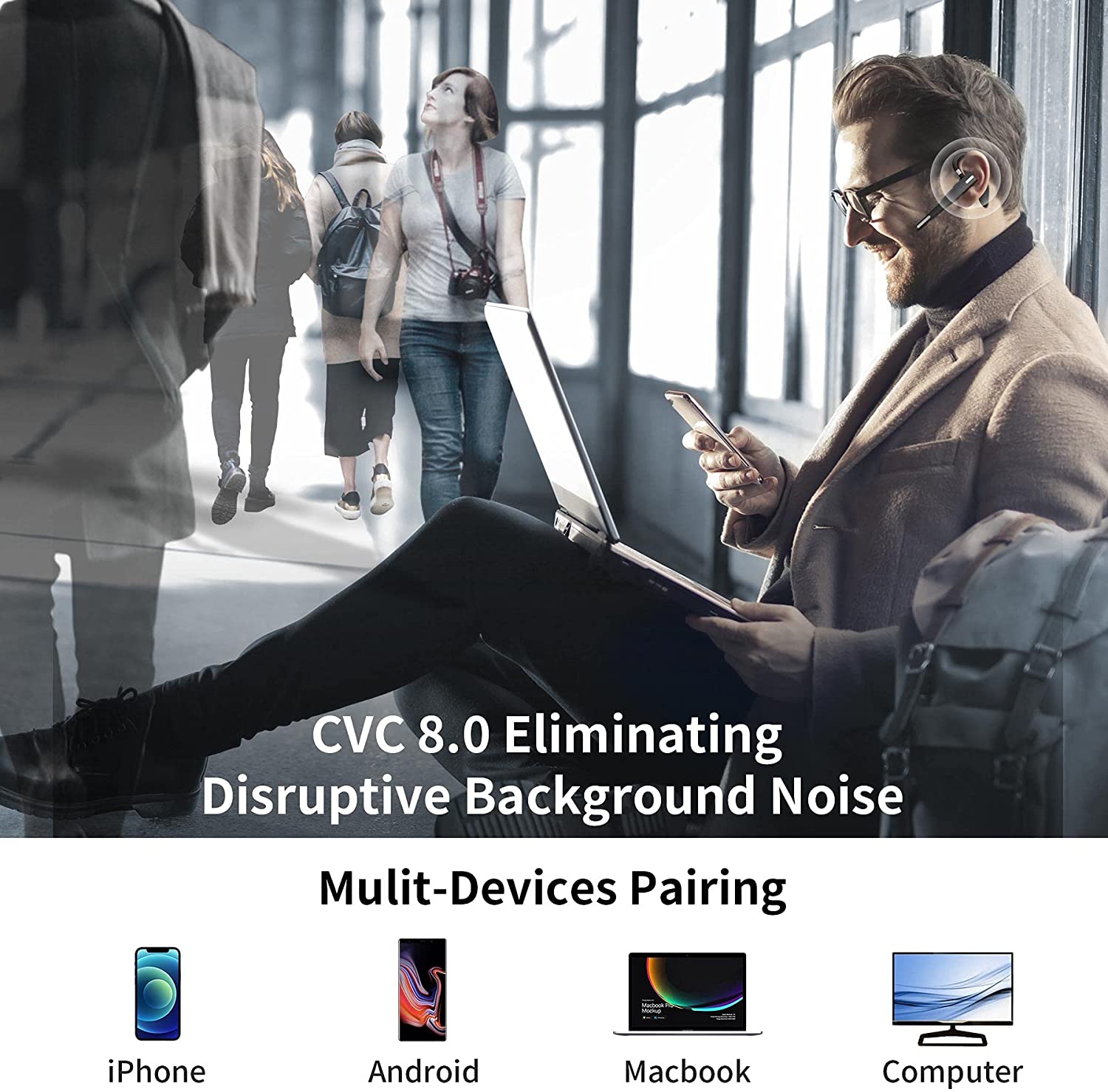 Bluetooth Earpiece for Cell Phone Noise Canceling Headphone with Microphone Wireless Headset Bluetooth Earpiece 5.1 Hands Free Headset CVC8 Compatible with iPhone Android for Business Office Driving